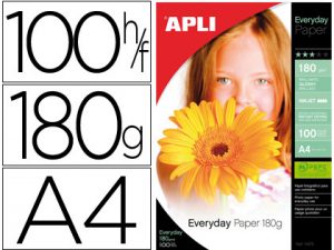 Papel fotografico apli glossy din a4 pack 100 hojas de 180 gr