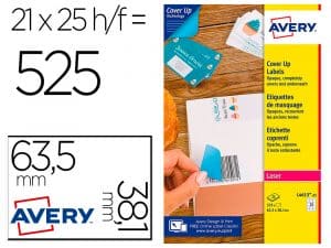 Etiqueta adhesiva avery permanente para impresora laser blanca 63,5×38,1 mm caja de 525 unidades