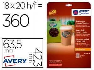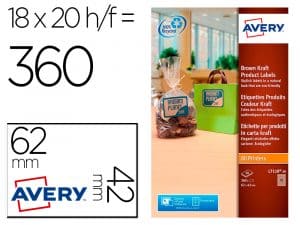 Etiqueta adhesiva avery kraft efecto carton rectangular 62×42 mm removible para laser ink-jet