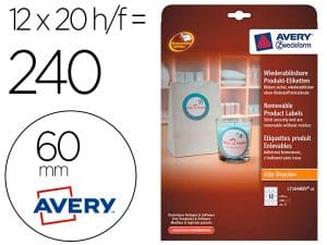 Etiqueta adhesiva avery blanca redonda removible para impresora laser inyeccion tinta fotocopiadora 60 mm