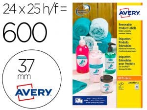 Etiqueta adhesiva avery blanca redonda removible para impresora laser inyeccion tinta fotocopiadora 37 mm
