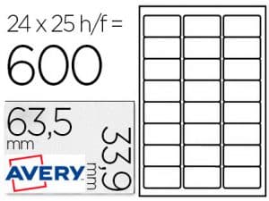 Etiqueta adhesiva avery para congelador blanca 63,5×33,9 mm ink-jet laser y fotocopiadora pack de 600