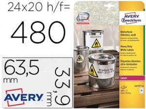 Etiqueta adhesiva resistente avery poliester blanco 3,9 mm 63,5×33,9 mm laser pack de 480unidades
