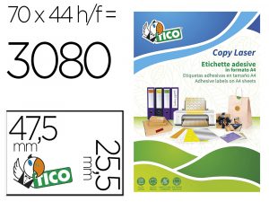Etiqueta adhesiva tico rojo fluor permanente fsc laser/ inkjet/fotocopia 47,5×25,5 mm caja de 3080 unidades