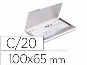 Tarjetero durable aluminio capacidad 20 tarjetas de visitas 55×90 mm color plata 100×65 mm