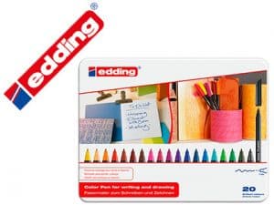 Rotulador edding punta fibra 1200 caja metalica 20 colores surtidos exp.8 unidades + 8 blister 4 edding 1340 regalo