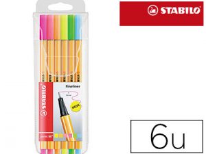 Rotulador stabilo punta de fibra point 88 blister 6 colores surtidos neon