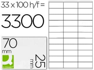 Etiqueta adhesiva q-connect kf10640 tamaño 70×25 mm fotocopiadora laser ink.jet caja con 100 hojas din a4