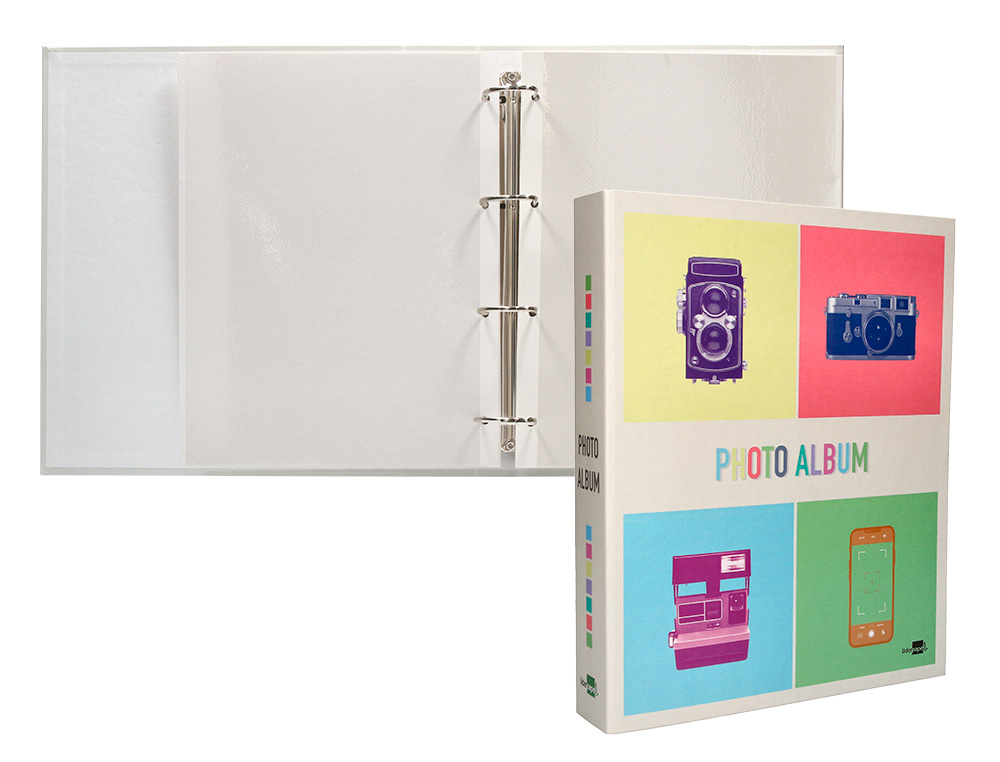 ATRACTIVO ALBUM DE FOTOS PARA TODOS TUS MOMENTOS Y MEJORES RECUERDOS. CÓMODO Y VERSÁTIL, CON ANILLAS QUE PERMITEN MAS CAPACIDAD DE HOJAS. CONTIENE 20 HOJAS AUTOADHESIVAS EN CARTON BLANCO Y LÁMINA PROTECTORA DE PVC. MEDIDAS ALBUM 325X270MM.