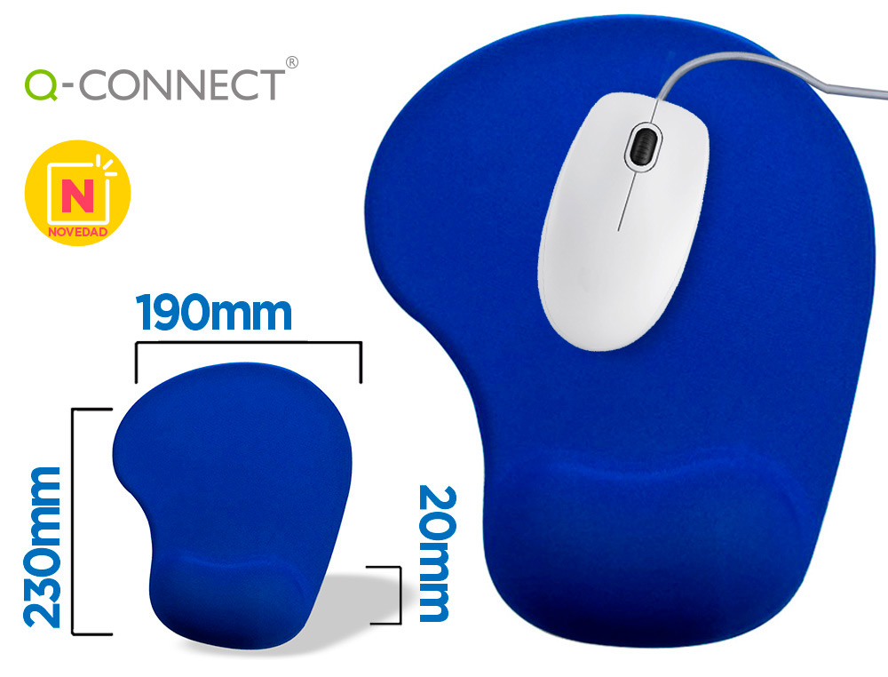 Alfombrilla para raton q-connect reposamuñecas de gel color azul 190x230x20 mm