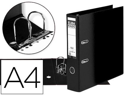 Archivador de palanca elba carton forrado din a4 negro lomo de 80 mm rado