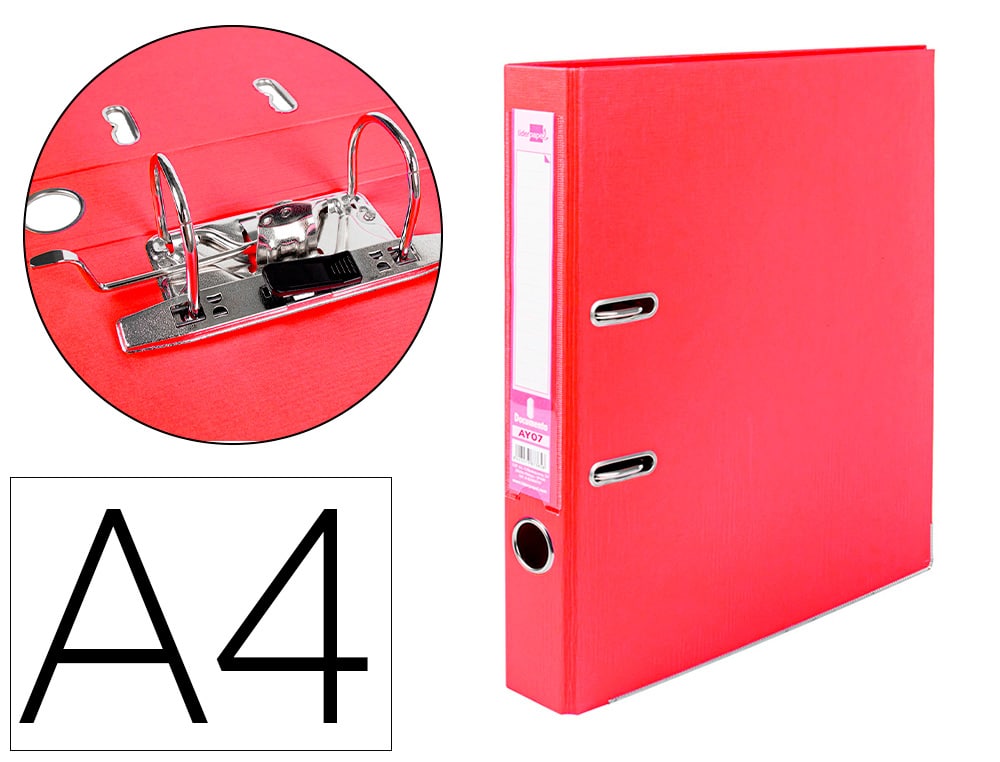 Archivador de palanca liderpapel a4 documenta forrado pvc con rado lomo 52mm rojo compresor metalico