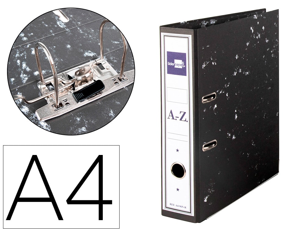 Archivador de palanca liderpapel carton forrado din a4 jaspeado negro sin caja-con rado