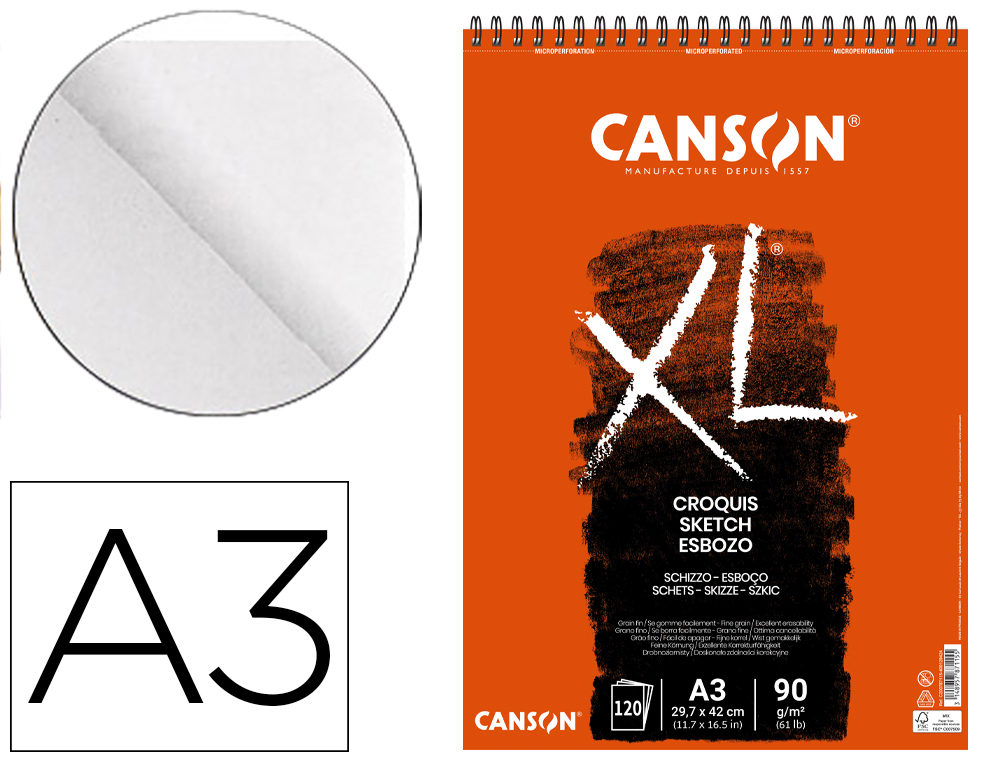 Bloc dibujo croquis din a3 microperforado 29,7×42 cm 120 hojas grano fino 90 gr