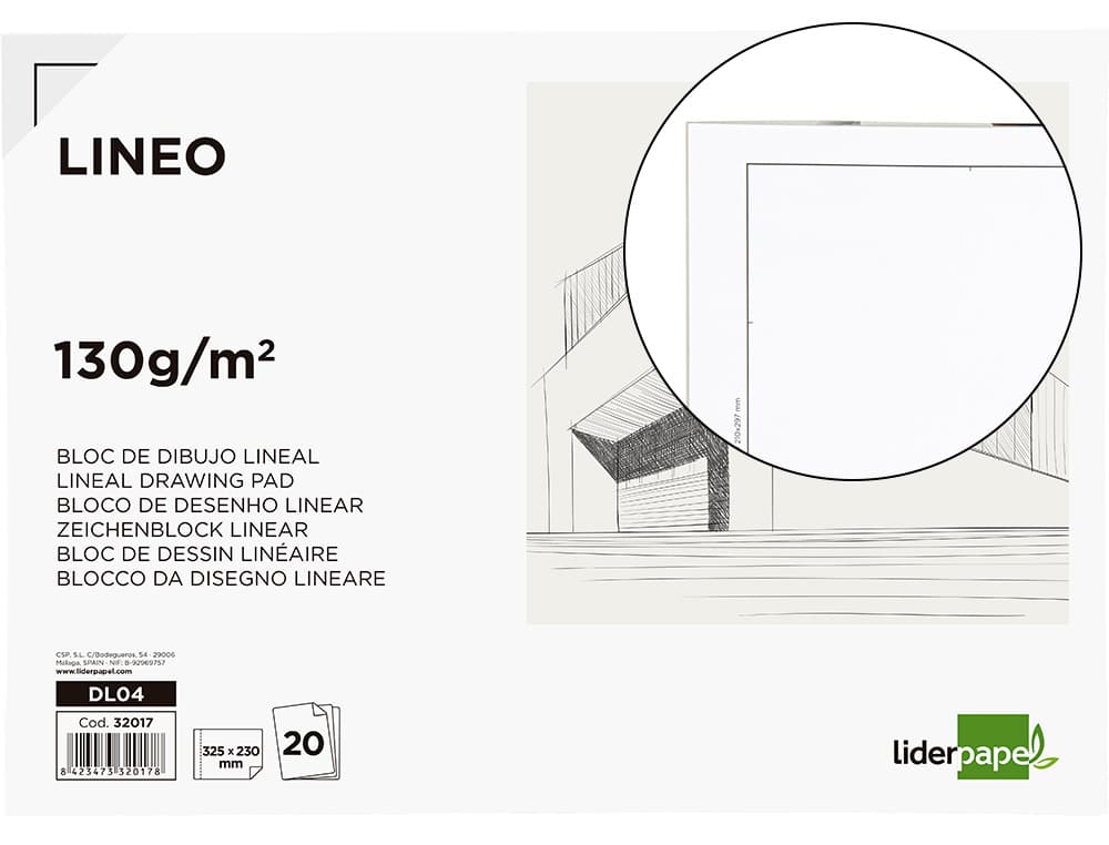Bloc dibujo liderpapel lineal encolado 230x325mm 20 hojas 130g/m2 con recuadro