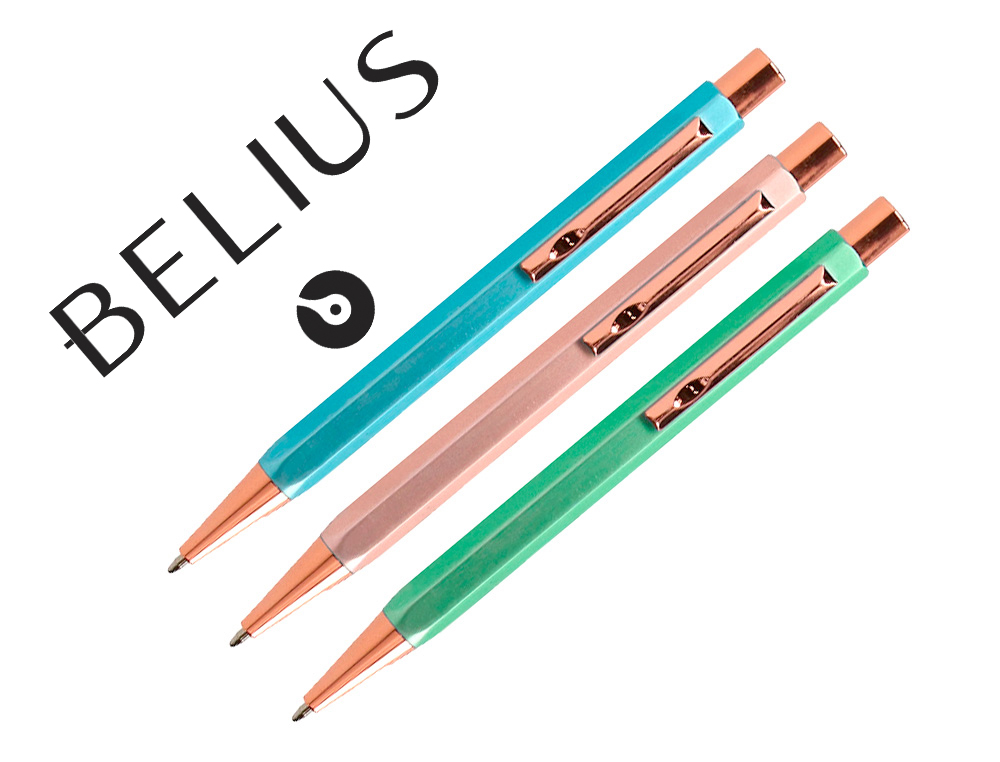 Boligrafo belius brela cuerpo hexagonal con clip colores pasteles caja de regalo con 3 boligrafos