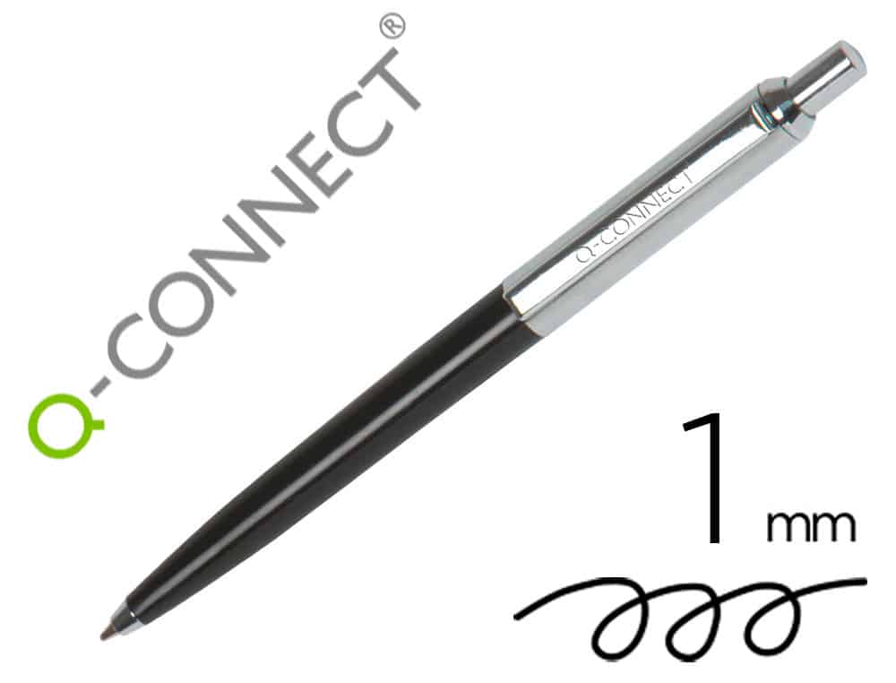 Boligrafo q-connect premium metalico retractil con clip color negro punta 1 mm