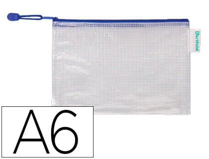 Bolsa multiusos tarifold pvc din a6 apertura superior con cremallera portaboligrafo y correa azul