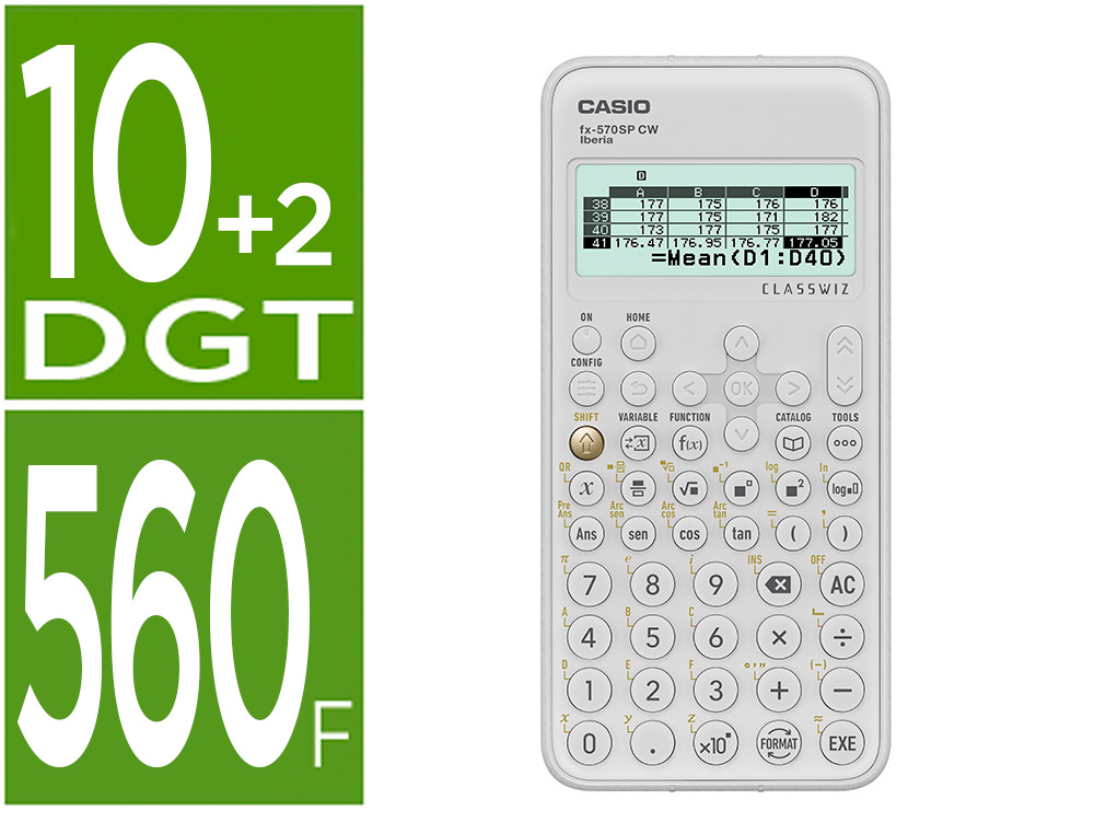 Calculadora casio fx-570sp classwiz iberia cientifica 560funciones 9 memorias 10+2 digitos 5 idiomas con tapa