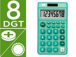 Calculadora de bolsillo de 8 dígitos. Tecla de encendido. Funciones de raíz cuadrada, porcentaje, suma y resta de memoria. Solar y a pilas. Utiliza pilas LR1130. Medidas: 115 x 65 x 8 mm. Peso: 105 g.