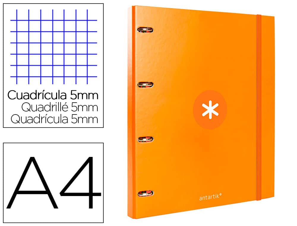 Carpeta con recambio liderpapel antartik a4 cuadro 5mm forrada 4 anillas 25mm redondas color mostaza