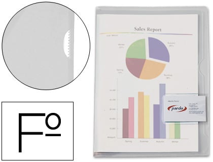 Dossier transparente de gran calidad con cierre tarjetero, ideal para presentaciones. Con uñero. Tamaño folio. 300 micras.