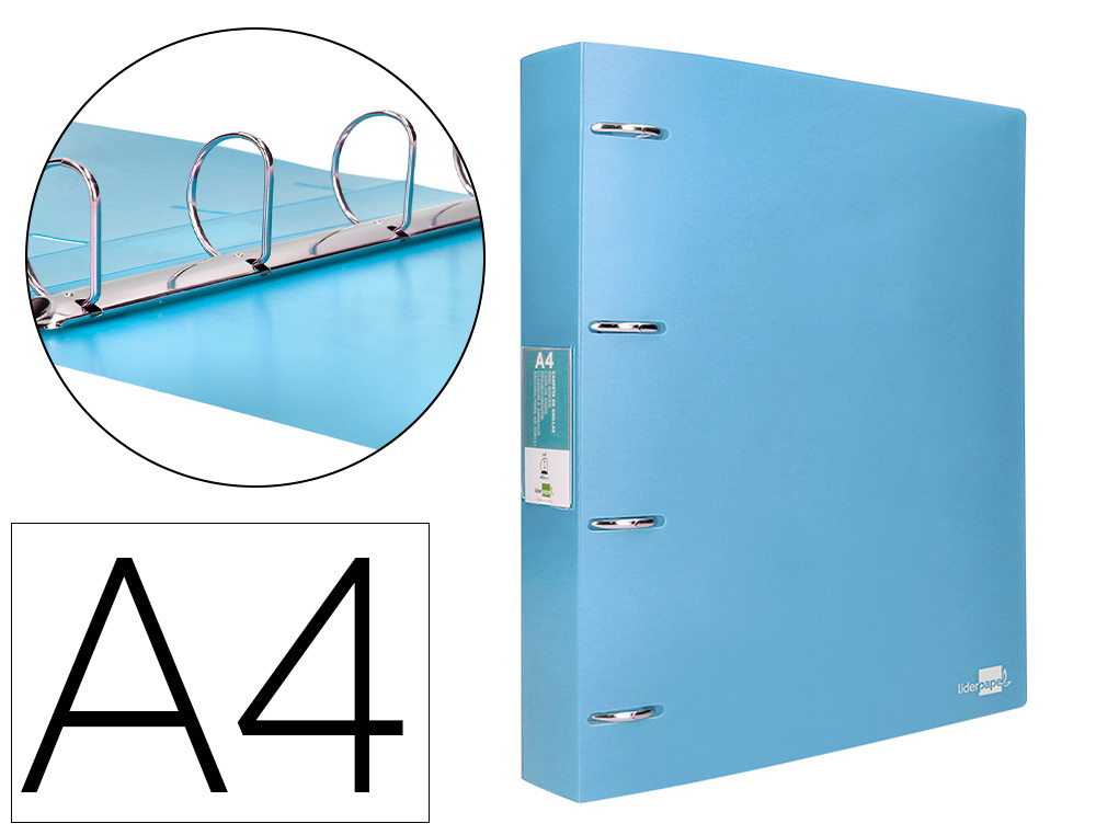 Carpeta liderpapel 4 anillas mixtas 40 mm polipropileno din a4 celeste opaco
