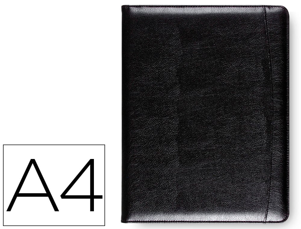Carpeta para congresos. Incluye bloc de notas. Identificador para tarjetas, soporte para bolígrafos y un bolsillo tipo solapa. Fabricada en plástico. Formato DIN A4. Color negro. Medidas: 250 x 320 x 25 mm.