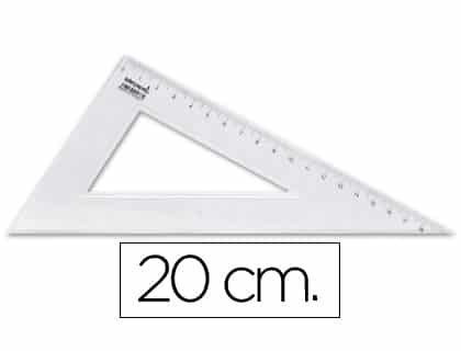Transparente, biselado y graduado. Escala en milímetros.