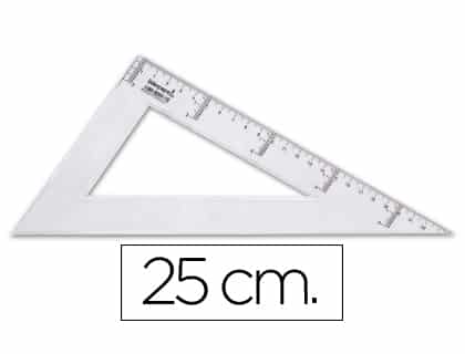 Transparente, biselado y graduado. Escala en milímetros.