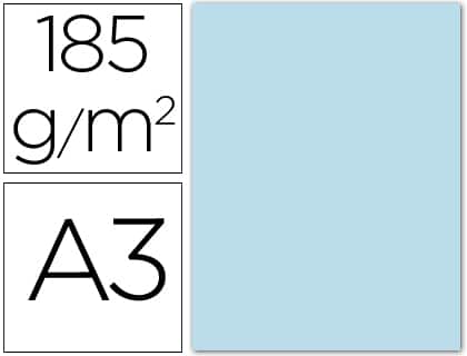 Cartulina guarro din a3 azul cielo 185 gr paquete 50 hojas