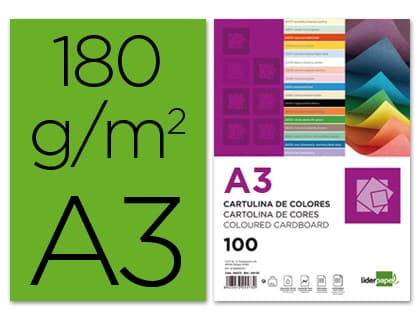 Cartulina liderpapel a3 180g/m2 verde paquete de 100 hojas
