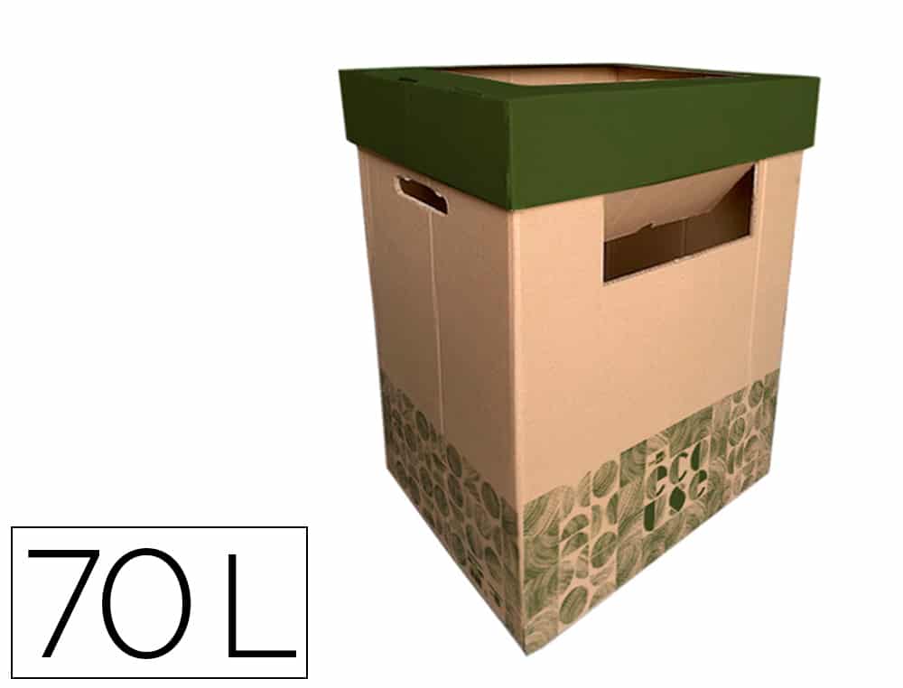 Contenedor papelera reciclaje liderpapel ecouse carton 100% reciclado y reciclable 70 litros 450x350x650 mm