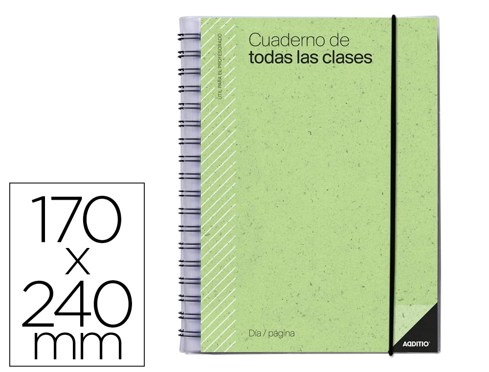 Cuaderno de todas las clases profesorado addittio 256 paginas dia pagina color verde 170×240 mm