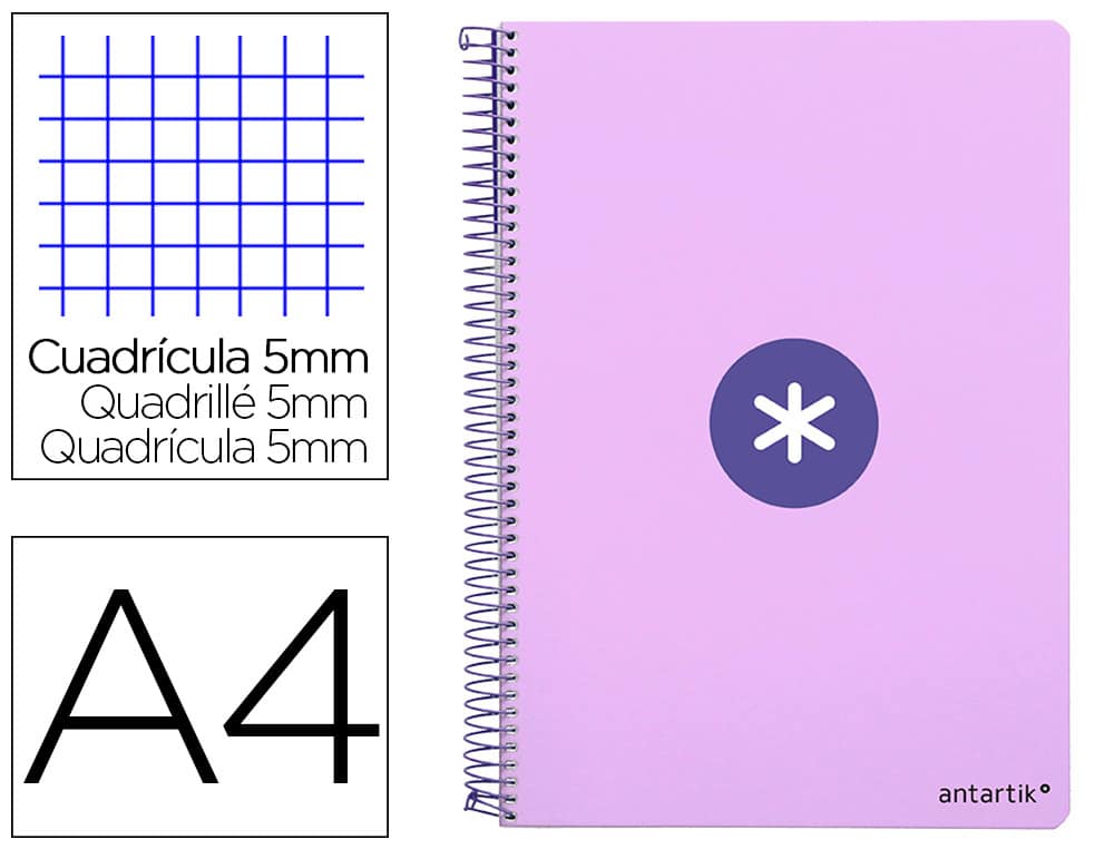 Cuaderno espiral liderpapel a4 micro antartik tapa dura 80h 100 gr cuadro 5 mm sin bandas 4 taladros color lavanda
