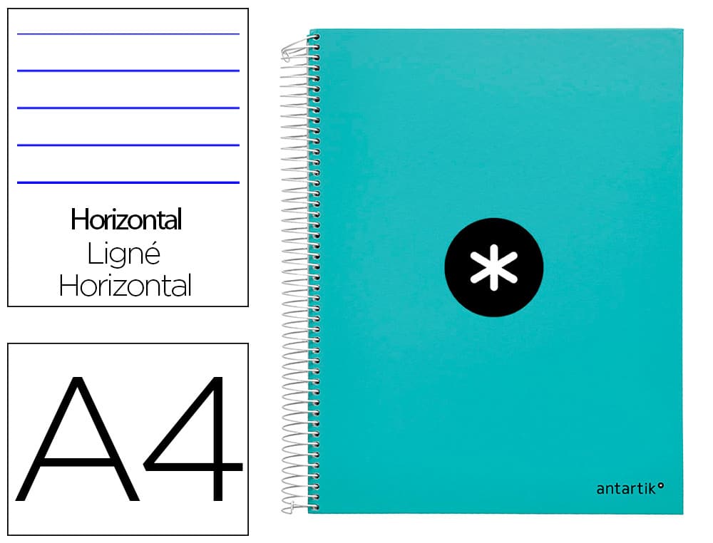 Cuaderno espiral liderpapel a4 micro antartik tapa forrada 120h 100 gr horizontal 5 banda4 taladores color menta