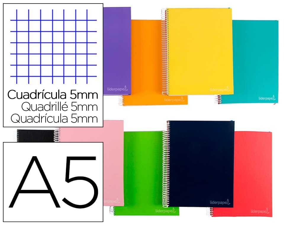Cuaderno espiral liderpapel a4 micro jolly tapa forrada 140h 75 gr cuadro 5mm 5 bandas4 taladros colores surtidos
