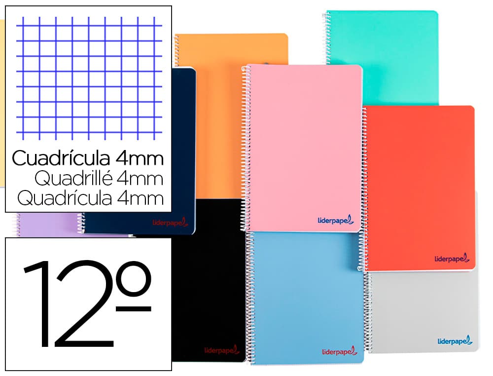 Cuaderno espiral liderpapel a4 wonder tapa plastico 80h 90gr cuadro 4mm con margen colores surtidos