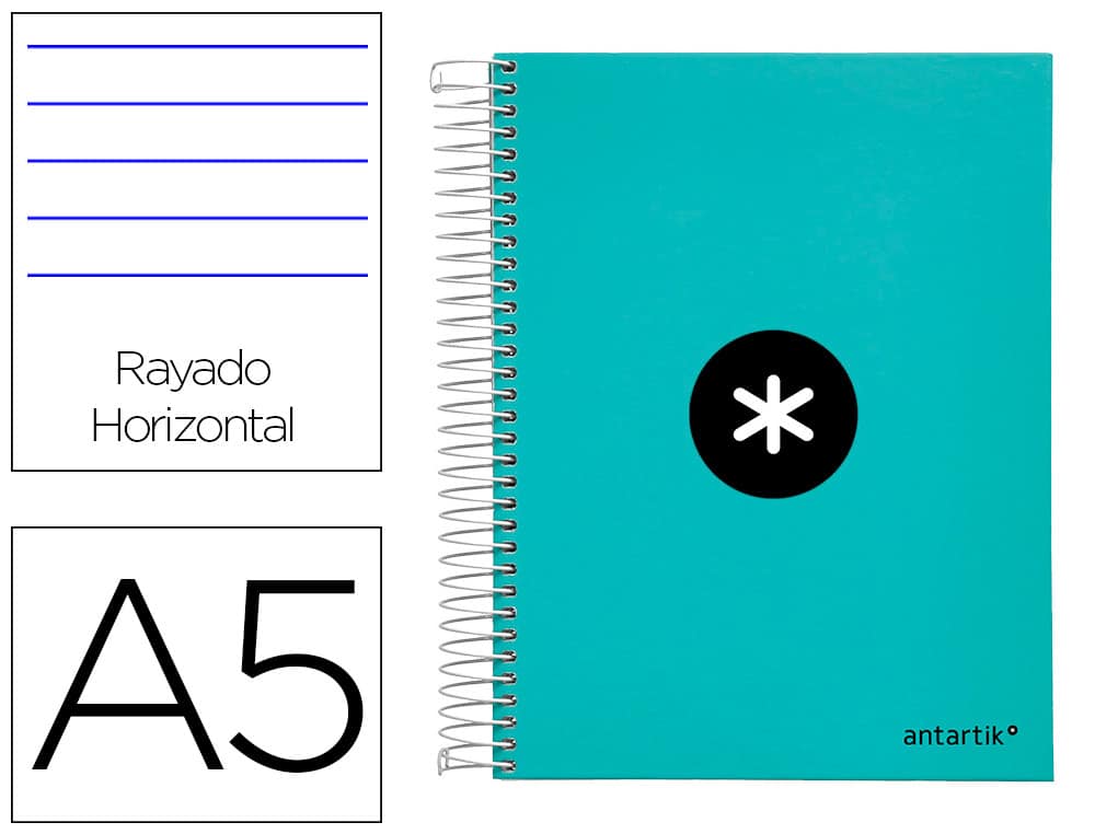 Cuaderno espiral liderpapel a5 micro antartik tapa forrada120h 100 gr horizontal 5 banda6 taladros color menta