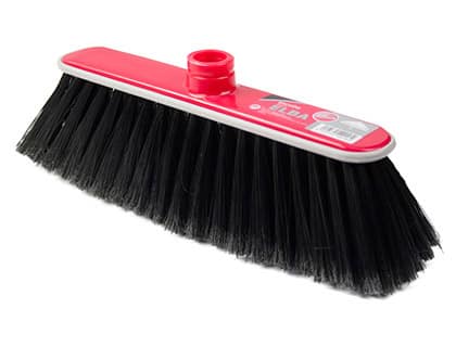 Escoba multiusos. Cerdas sintéticas y cantos de goma a prueba de golpes. No incluye palo. Medidas: 30 cm.