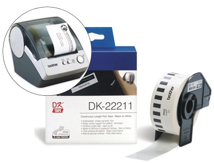 Etiqueta brother dk22211 cinta plastica continua adhesiva blanca 29mmx15,24mts