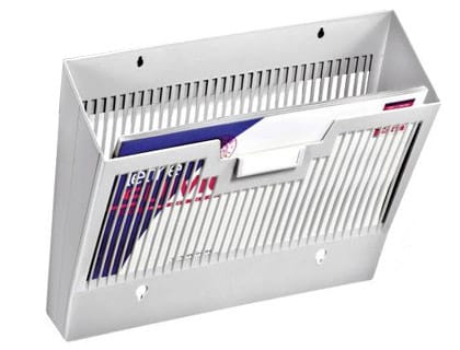 Expositor de rejilla de gran capacidad para documentos DIN A4 y folio. Acoplable en vertical. Con portaetiquetas central. Apertura ancha para fácil acceso. Equipado con un soporte de etiqueta central, para poder unir las cestas en grupos o por separado. Fabricado en poliestireno reciclable de alto impacto. Color negro. Medidas: 25,7 x 36 x 9,5 cm.