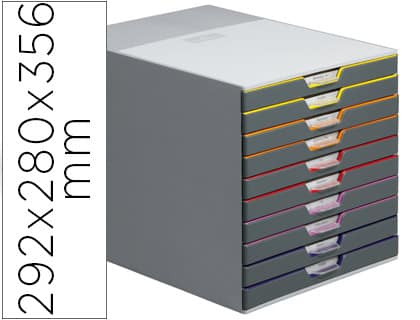 Fichero cajones de sobremesa durable varicolor apilables 10 cajones plastico 292x280x356 mm