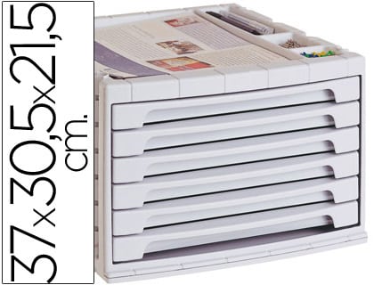 Módulos de cajones apilables y con tope de seguridad para evitar que se caigan al abrirlos. Suave deslizamiento. Agujero en la base para una fácil extracción de los documentos. Acepta documentos de hasta 270 x 320 mm. Incluye bandeja organizadora en la parte superior para tener siempre a mano los accesorios de oficina. Su diseño ergonómico y funcional facilita un apilamiento muy estable con la simple colocación de un módulo sobre otro. Medidas: 305 x 215 x 370 mm.