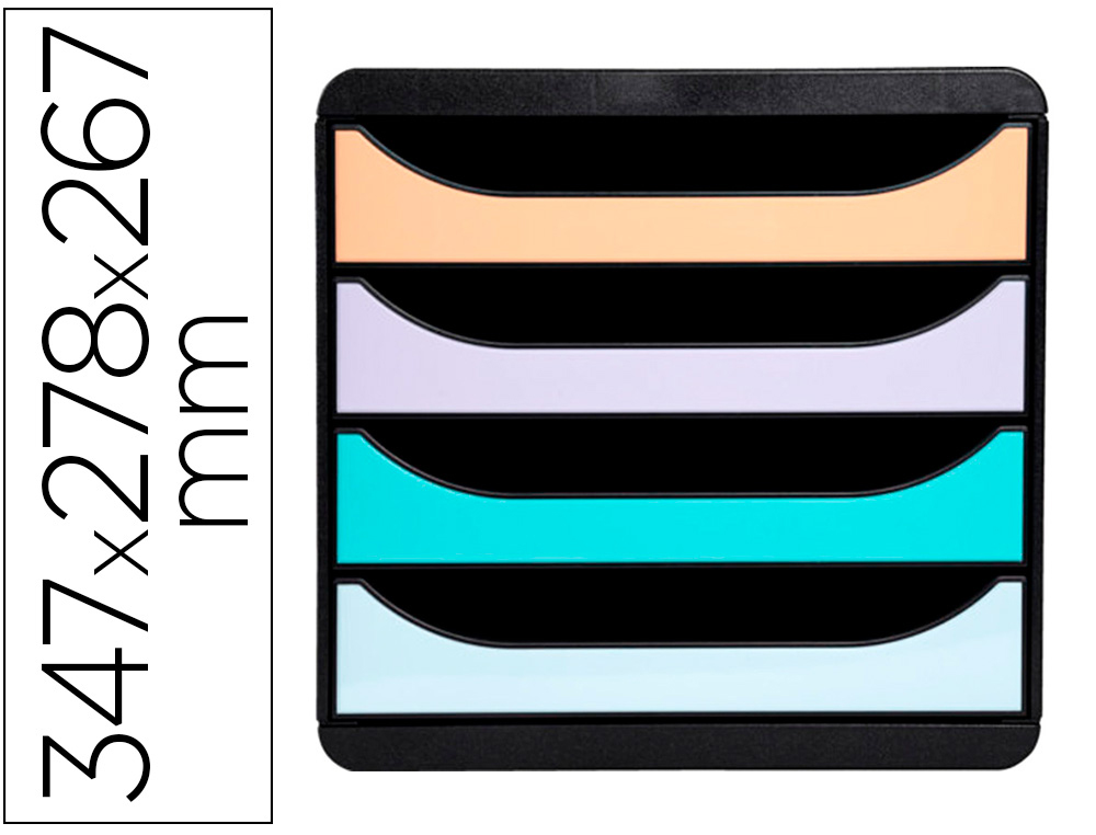 Fichero cajones sobremesa exacompta big-box aquarel negro 4 cajones colores pastel glossy