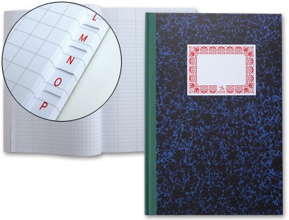 Cuadernos de cartón forrado de papel jaspeado y lomo de tela engomado. Papel de 70 g/m². 100 hojas.