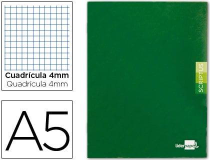 Libreta liderpapel scriptus a5 48 hojas 90g/m2 cuadro 4mm con margen color verde