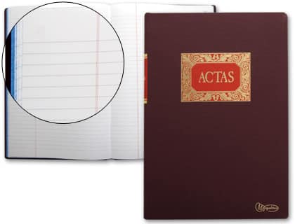 Libro forrado en tela con lomo engomado. Papel registro de 102 g/m². Foliado. Medidas: 220 x 315 mm. Tamaño folio natural.