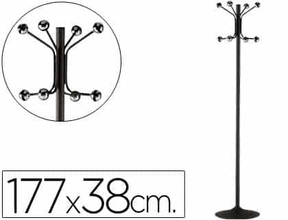 Perchero metalico pie 8 colgadores color negro 177×38 cm