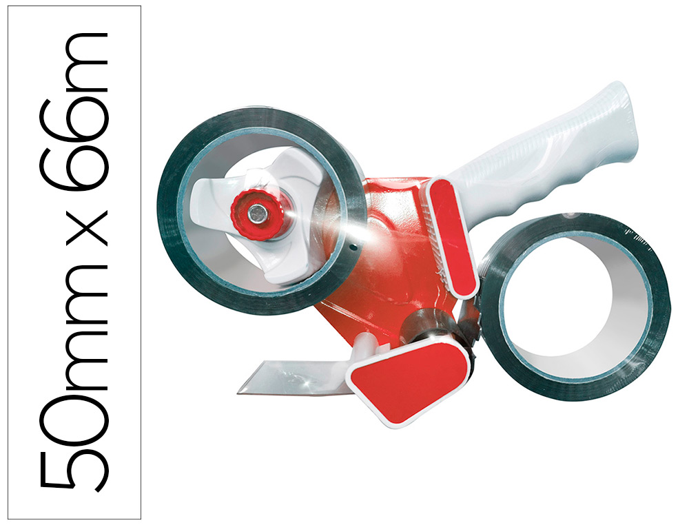 Portarrollo q-connect para embalaje para cintas de 66mt x 50mm incluye 2 rollos cinta marron